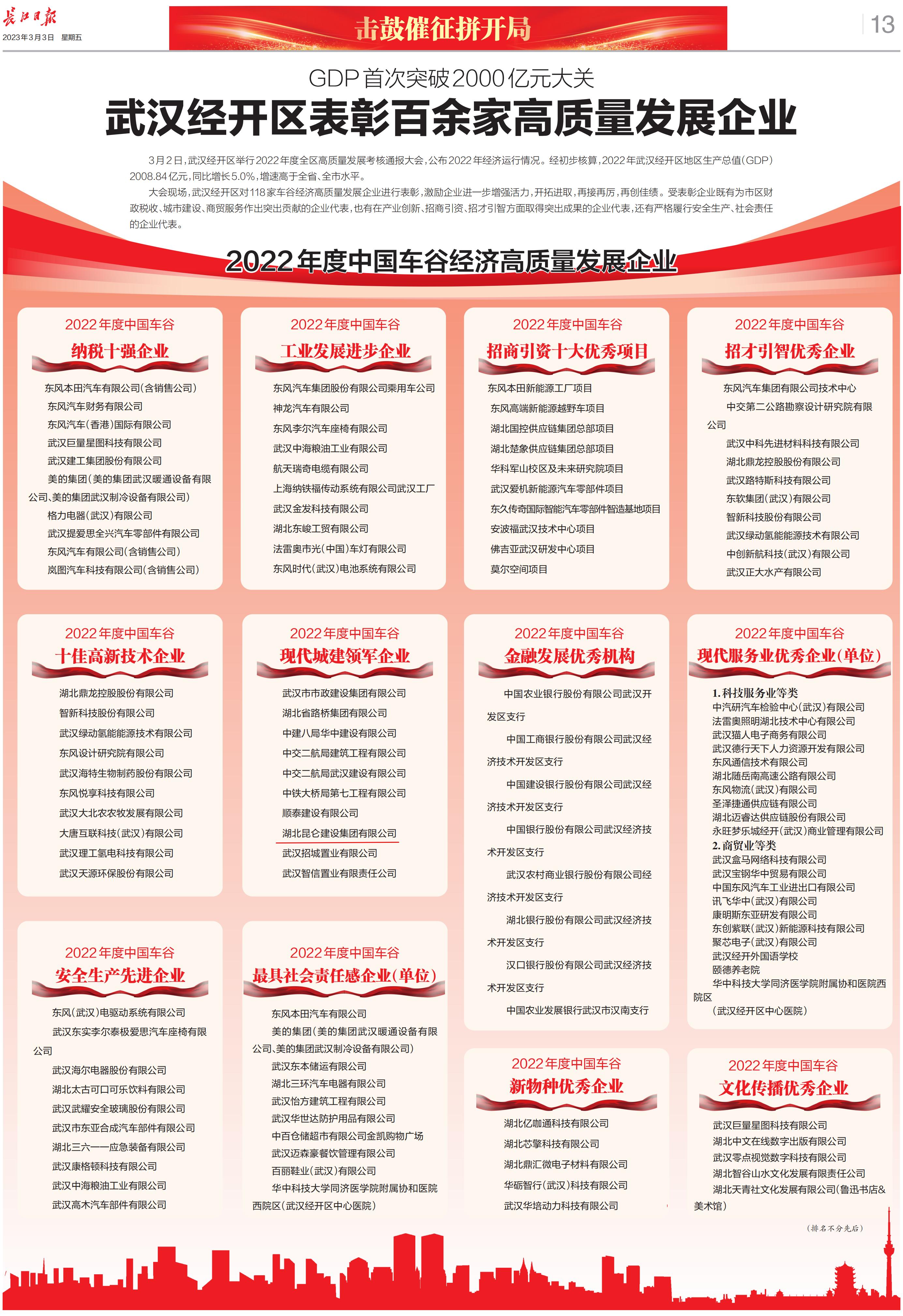 2022年昆侖集團榮登武漢經開區(qū)高質量發(fā)展企業(yè)(...