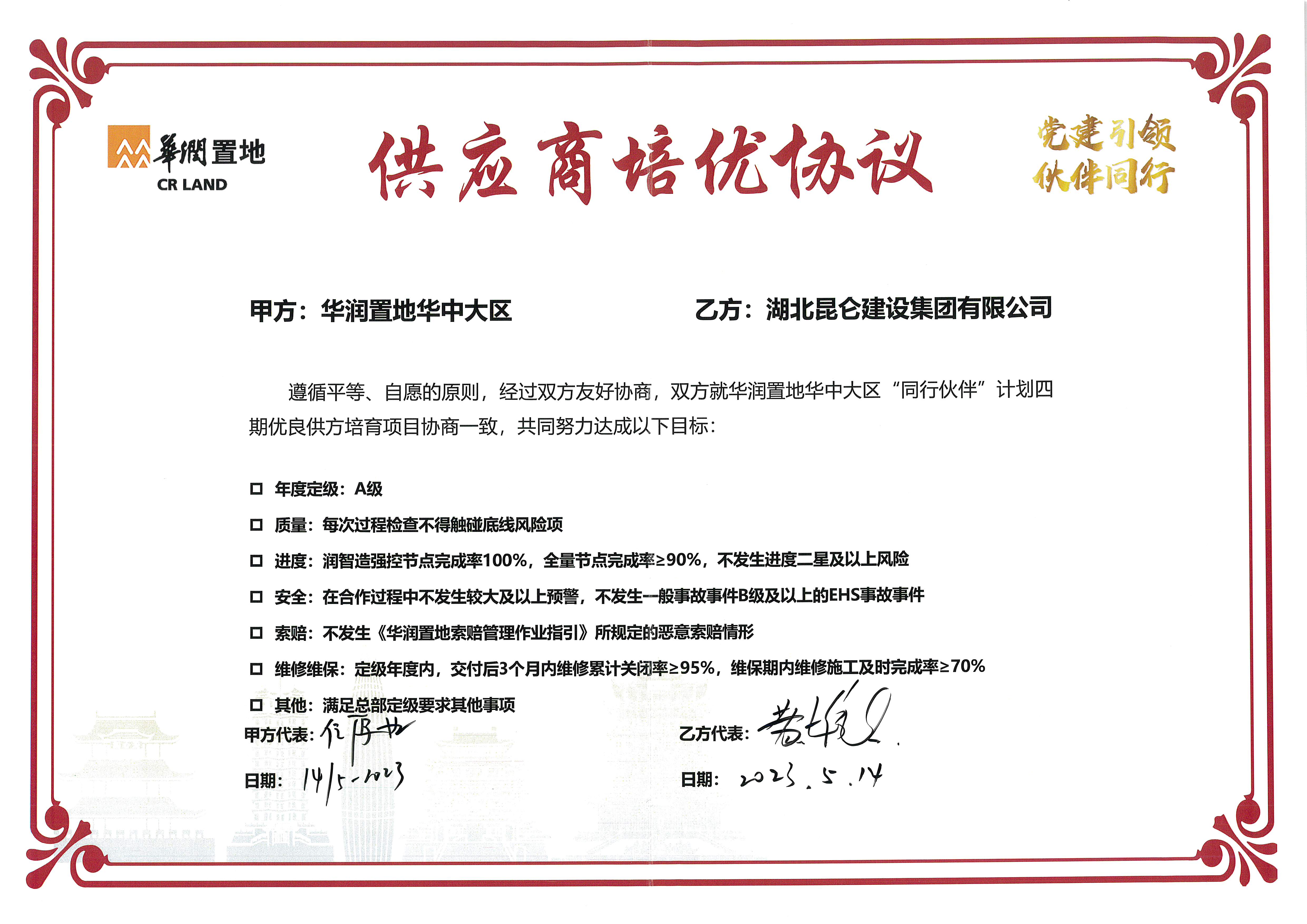 2023年5月14日簽署華潤置地華中大區(qū)(供應商...