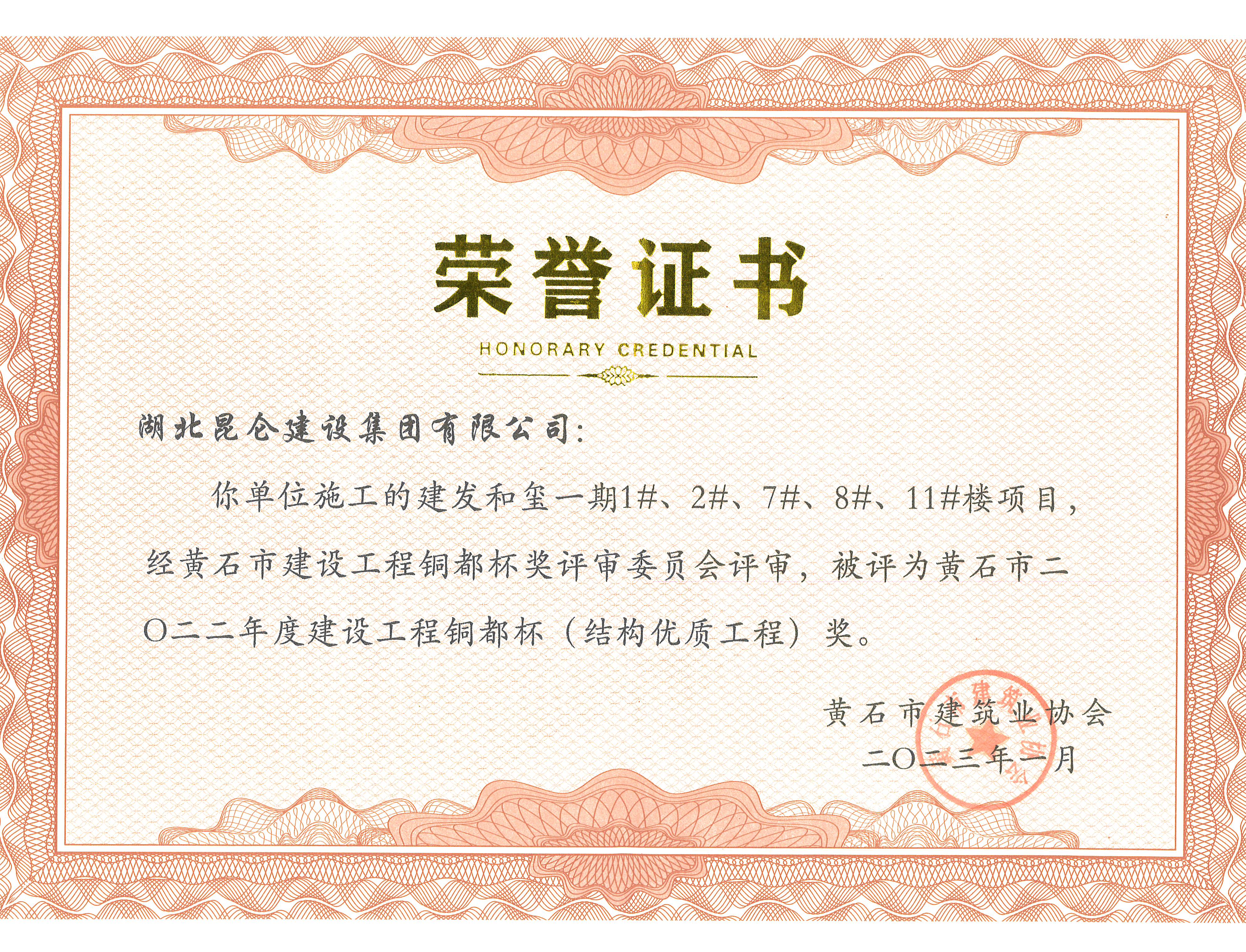 建發(fā)集團2022年度優(yōu)秀施工獎